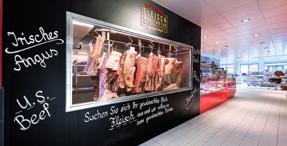 Kübler-Geschäftsführer Friedrich Heller bestätigt sofort: „Gerade die schwarze Fliese passt perfekt zu unserer hochwertigen Ausstattung.“ Die Investition hat sich gelohnt: „Der Verkaufsraum sieht jetzt richtig modern aus.“ Im traditionsreichen Familienunternehmen wird täglich frische Wurst hergestellt, dazu Schinken, Teigwaren, Salate und Fertiggerichte. Die Metzgerei legt Wert auf regionale Produkte, das verarbeitete Fleisch kommt ausschließlich aus Baden-Württemberg. Diesen besonderen Qualitätsanspruch unterstreichen die neuen Fliesen perfekt.