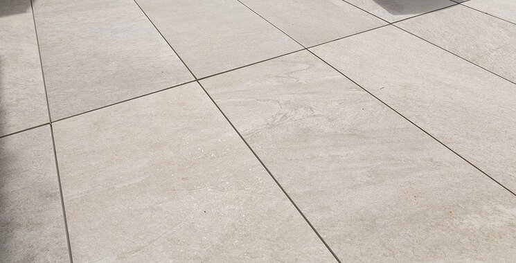 Die raue und widerstandsfähige Oberfläche der Fliese Pistoia punktet mit einem authentischen Look – die feinen Aderungen mit den dezent gestreuten Glanzpartikeln unterstreichen die natürliche Ausstrahlung. „Diese Fliese harmoniert perfekt zum Gesamtkonzept des Hauses der Kundschaft. Sie ist weder grau noch beige und passt trotzdem" so Frau Pfeffer weiter. „Und außerdem wirkt die Terrasse dank des länglichen Großformats jetzt auch viel größer als vorher mit den Pflastersteinen." Zudem lassen die dezenten Fliesen die in klassischem Dunkelgrau gehaltenen Gartenmöbel der Kunden perfekt zur Geltung kommen.